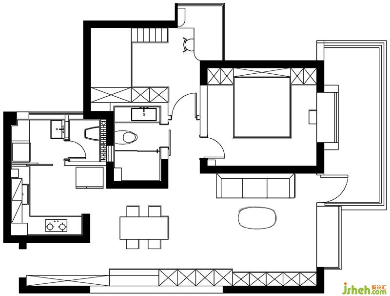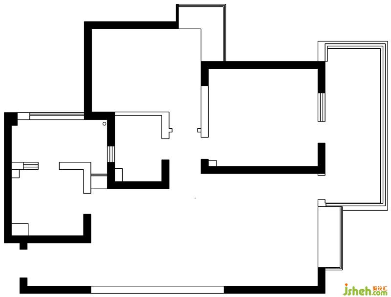 ● 原始户型分析 1. 生活阳台较大;客餐厅是单面采光;卫生间尺寸较为紧凑。