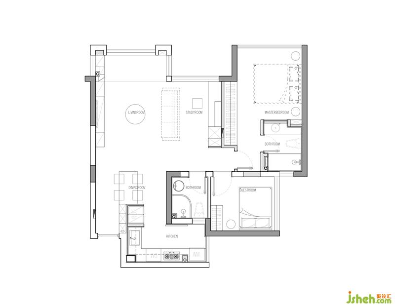 -1公共区域围绕着玄关-餐厅-客厅-办公区的动线展开,LDK一体化的开放式格局,让空间使用更灵活方便,生活应该创造更多可能而不是局限在方寸之间。