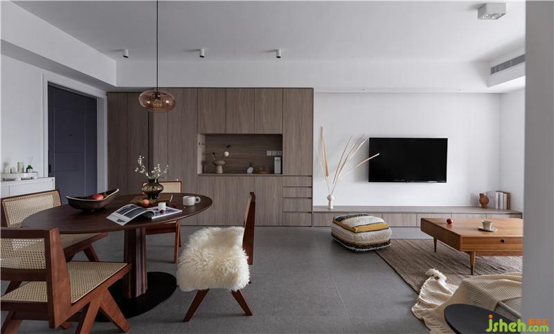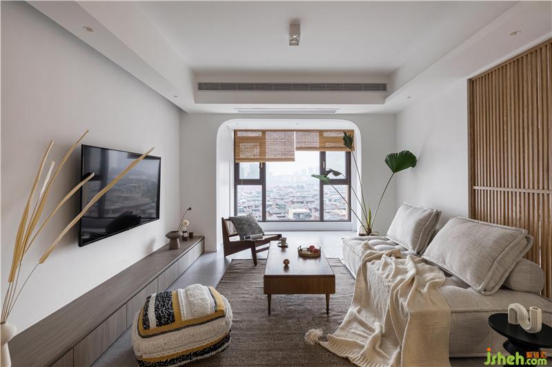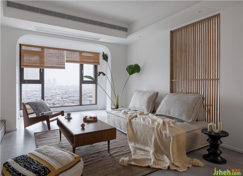 客厅的软装我们选择的MAZAY经典的柚木系列茶几以及藤编休闲椅,搭配ASIDES皮埃蒙特布艺沙发组合,这个老牌家具制造商出品的家具与我们想要传达给屋主的理念相契合,既有经典简约的造型同时满足舒适度。