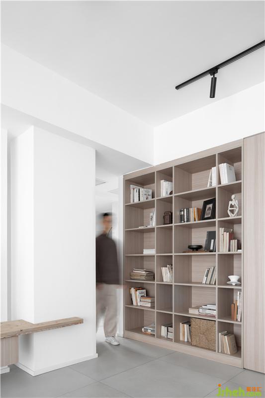 集成柜也成为了一片小型阅读角,将原本在房间的书籍疏解到公共区域。