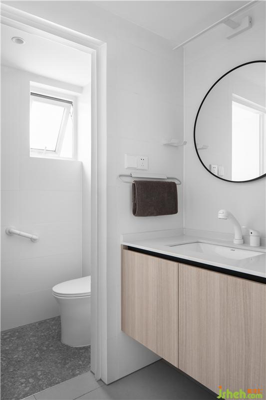 三分离卫生间的好处便是三代人同时在家也不容易打挤。马桶旁是一鸣为家中老人考虑的安全扶手,尽可能的为老人思虑得周全一些,防止意外发生。