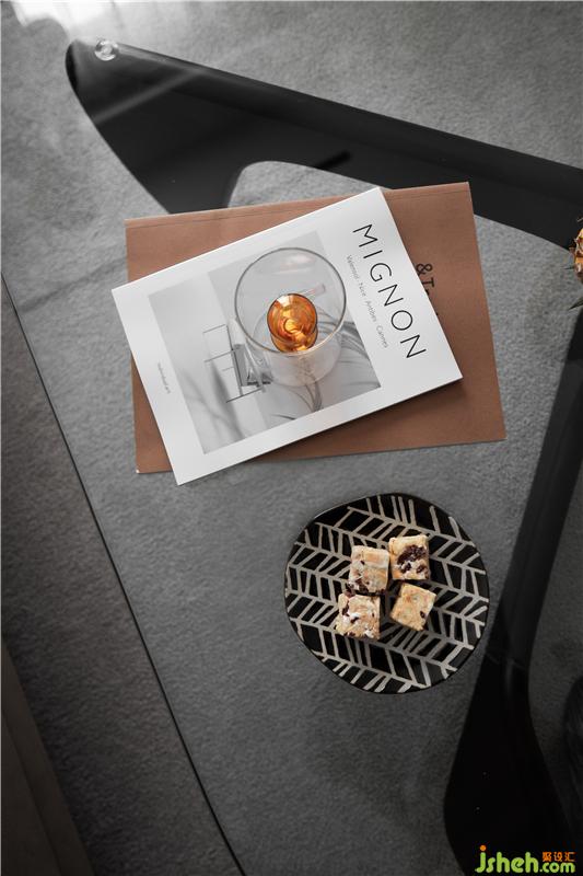 沙发、窗帘的面料与地毯选择了邻近色搭配,增加实木、真皮等元素自然感直接拉满,而少量玻璃、金属等元素共同构成“自然”与“现代”的冲撞。