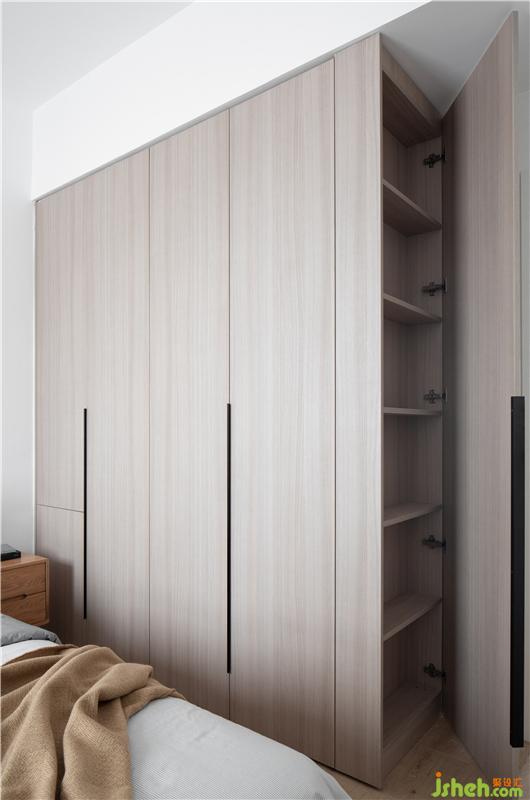 老人房按照主卧室一致的标准设计,衣柜侧面做了薄柜用于收纳老人家的药品和各种小东西。