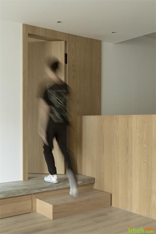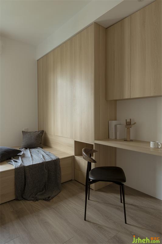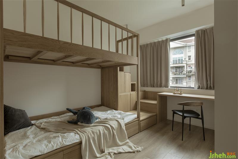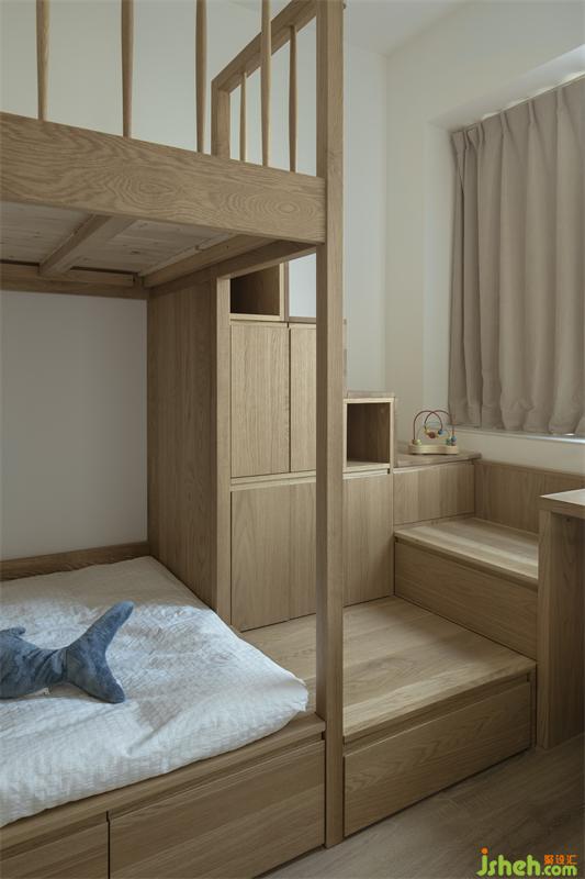 孩子的成长都离不开大人陪伴的过程,而屋主家的小朋友刚入幼儿园,高低床也适合大人晚间的照顾与陪伴,上下床的踏步为小朋友成长所需的收纳提供更多的空间。