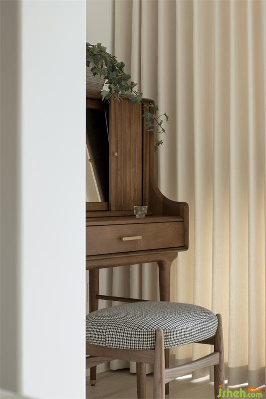 宽敞的主卧由梳妆空间及徒手健身空间组成 ,NORHOR的胡桃木梳妆台留下了女主人描眉梳妆的美好记忆。