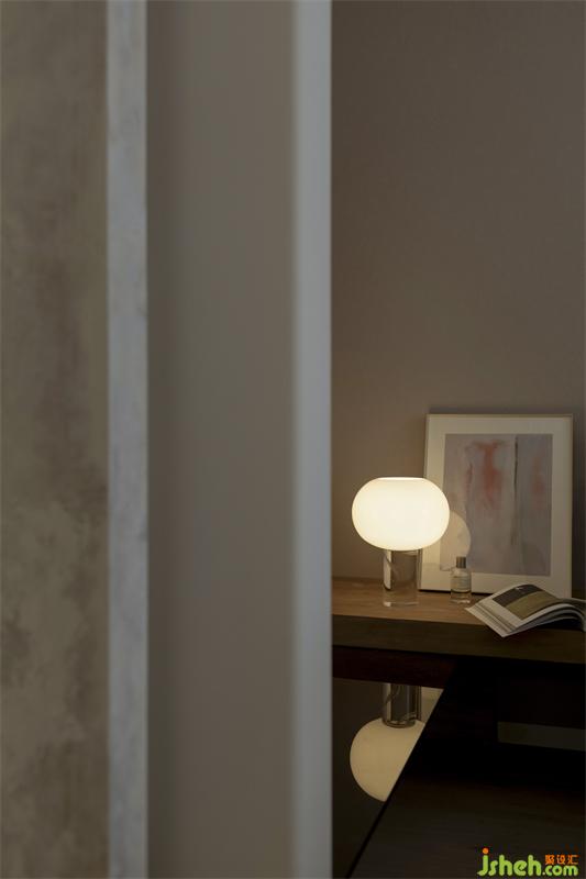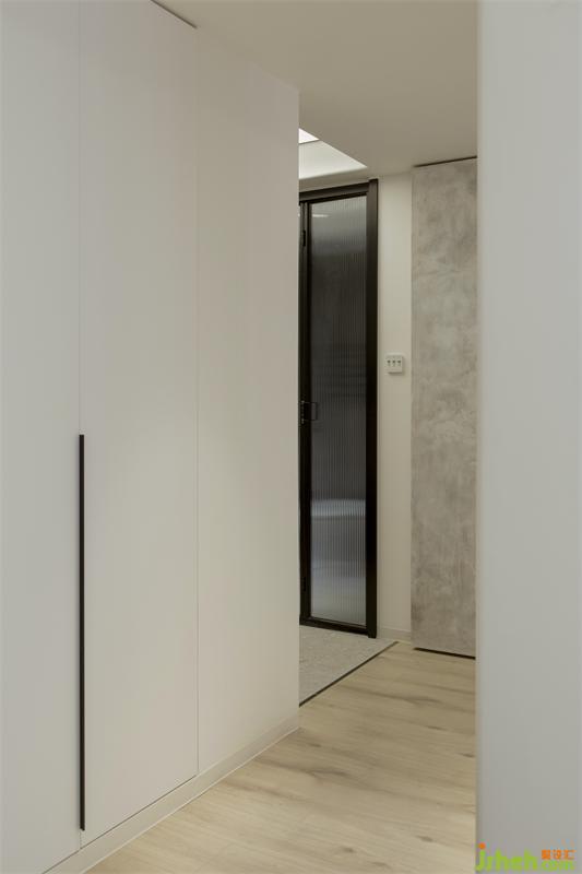 家居设计在墙体中嵌入竖条灰玻,便可减少墙体给视觉带来的拥堵。而背面的空间也能成为一幅可变的的画面,从卧室望向公共空间时有呼应的感受。