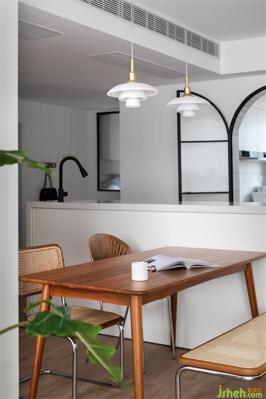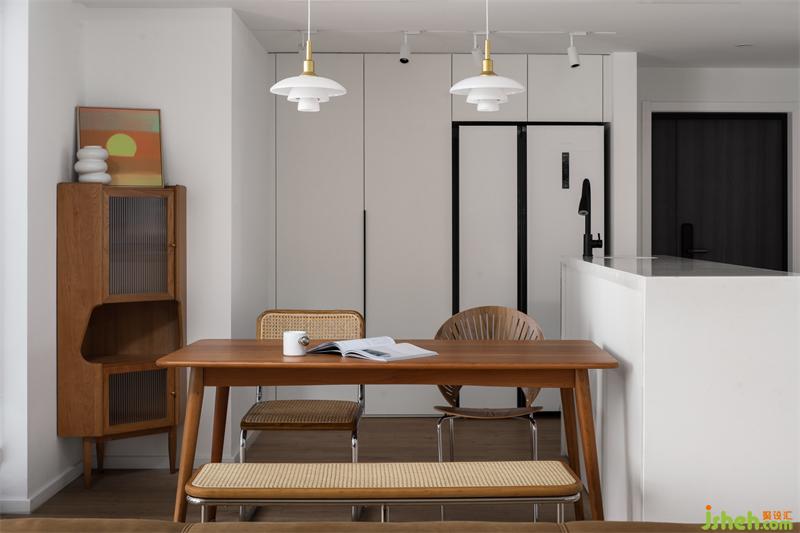 利用西厨的岛台设计,将餐厅与厨房做了一个空间分割。屋主有藏酒的小爱好,岛台下方设有储物柜,以便于对餐厅区的收纳进行补充。