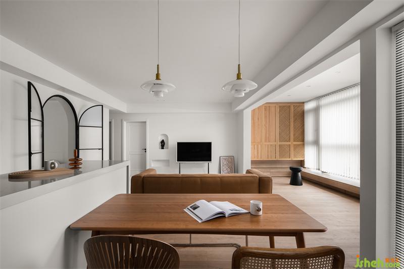 房屋位于顶楼,视野优势从拆除部分墙体后的玄关随之突出,窗外也无遮挡物,视野自然随之开阔,空间也敞亮了许多。