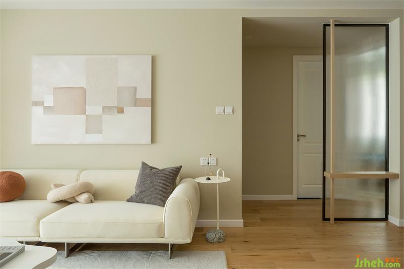 于是我们考虑拆除餐厅与过道的剪力墙以长虹玻璃隔断代替,引进客厅采光,同时视野开阔。