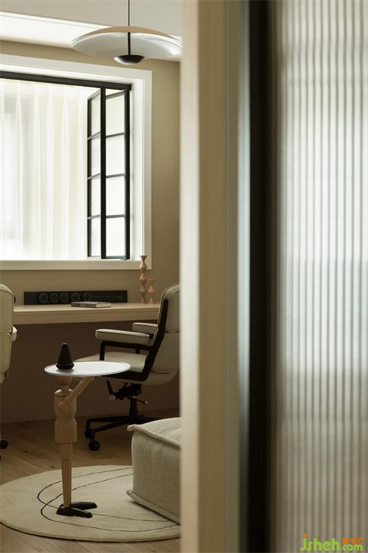 我们为这个家的每个休息空间都搭配了一张抽象画地毯,让它成为一个空间的点睛之笔。特别是精装房原始地板丑陋但又不想更换的情况下,选择一张大面积地毯将视觉从丑陋的地板转移到地毯。