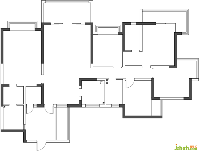 ❷ 过道包含了5个空间的入口,整体狭窄且长,采光较差。