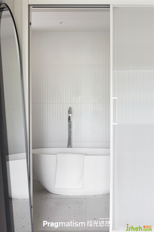 主卧的面积并不小,但是原始的户型中却包含了2个局促的小房间,不免变得鸡肋了不少。我们将玄关的空间重新分配,让出了一部分的空间来满足主卫安装独立浴缸,及步入式衣帽间的需求。