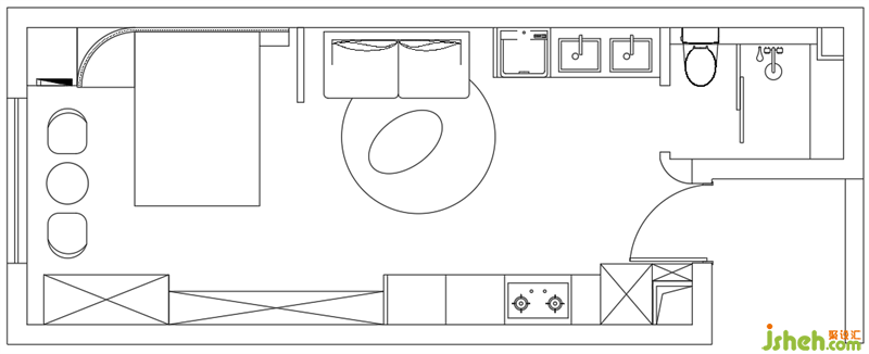 ❶ 原始户型为常见的规整长条形,层高3.2m不宜做双层。