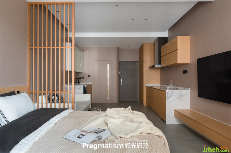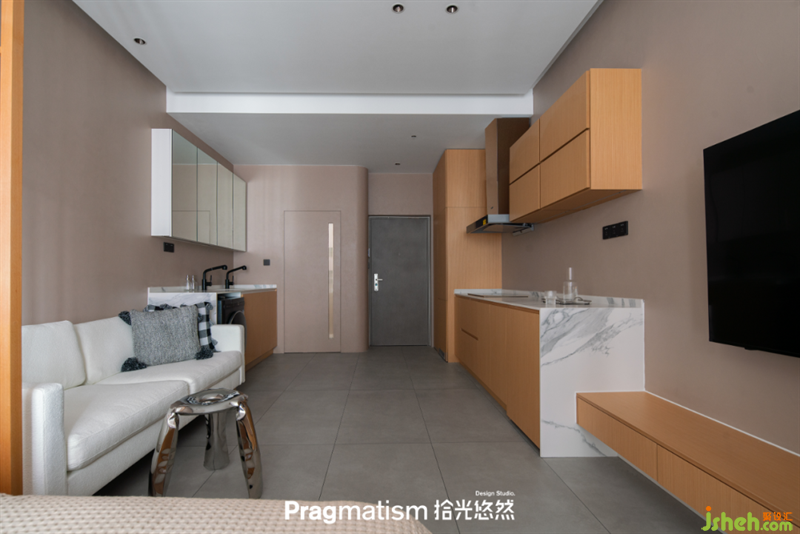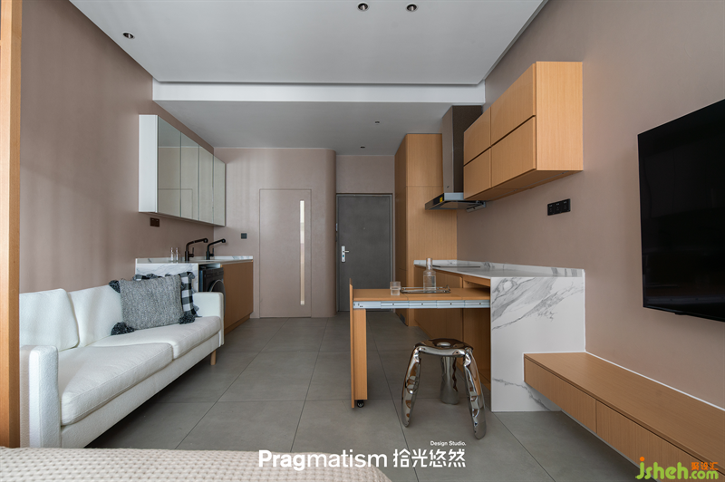本套案例为小户型公寓,屋主是一位职场白领,平时工作十分忙碌,家又离公司太远,每天光通勤就要花费大把时间。为了让生活更便捷,屋主买下公司附近的小公寓,用作临时休息使用。