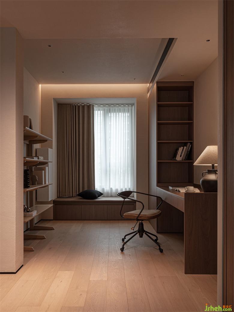 而走廊的另一侧,是提供给屋主办公、看书的书房空间。