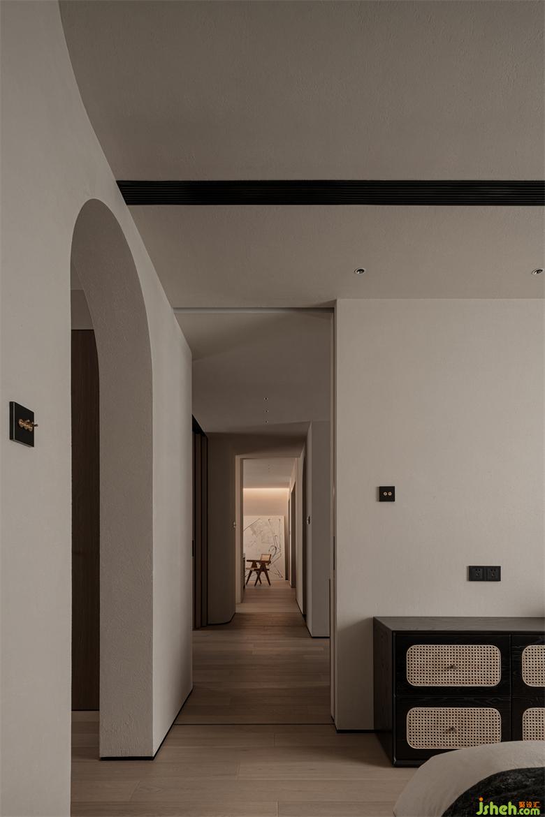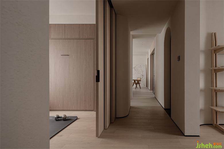 如今走廊两侧,不再是冰冷厚实的墙面,成都家装设计取而代之的是两间功能区域隔廊相望。