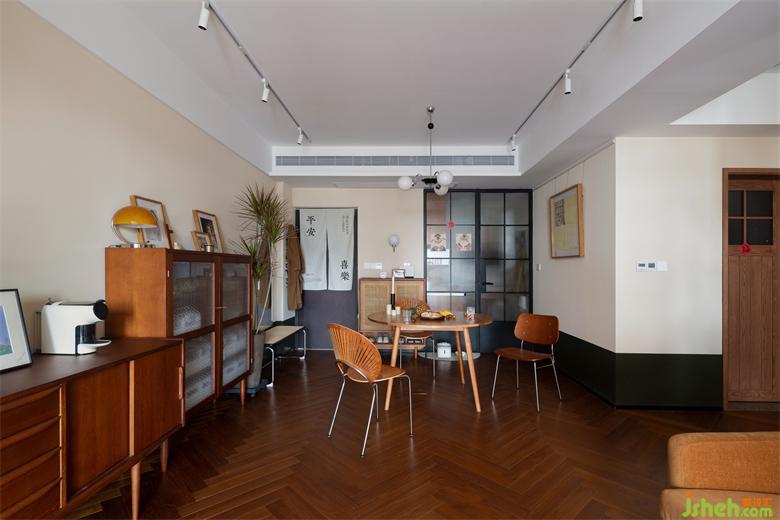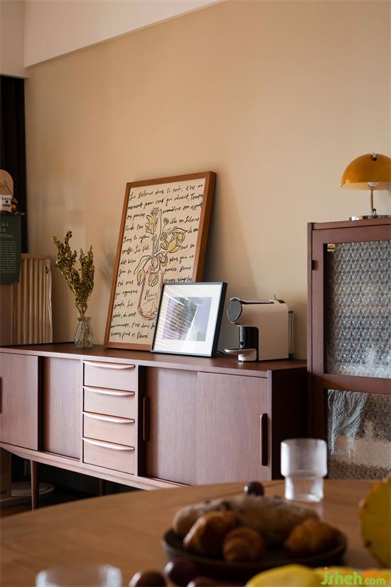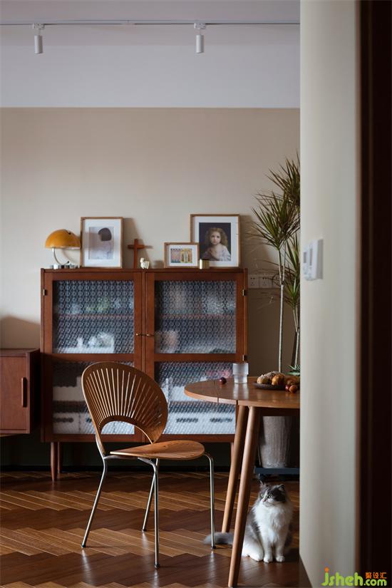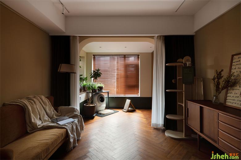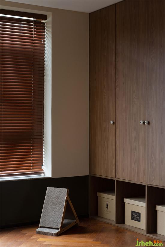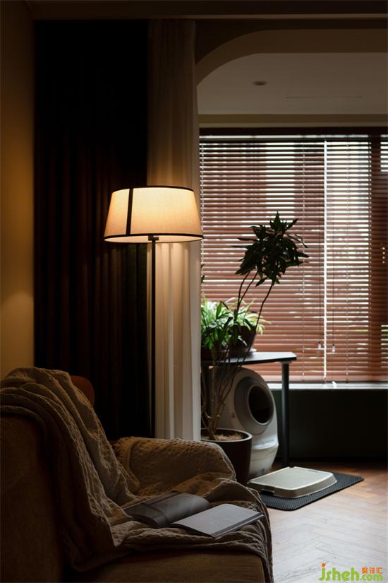 光线透过木质百叶窗帘,家装设计在家里映射出斑驳光影,像是一张被珍藏到画面泛黄的老照片,保留住每一刻的满满回忆。除了产生回忆,阳台还是照料宠物们的地方,宠物厕所、猫抓板等等一应俱全。