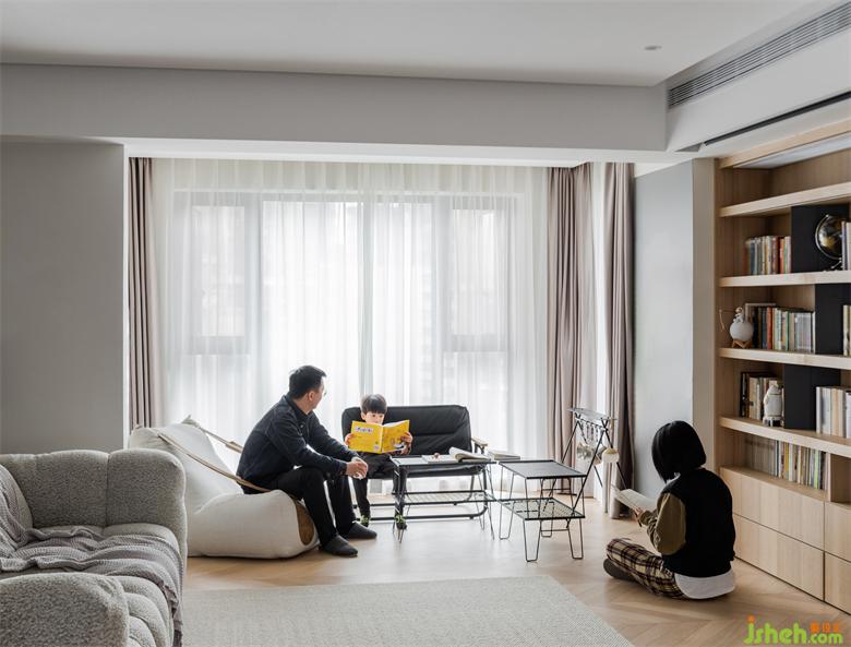 客厅+阳台+多功能室,家装设计除了是休闲空间,还是个超大的亲子互动空间。