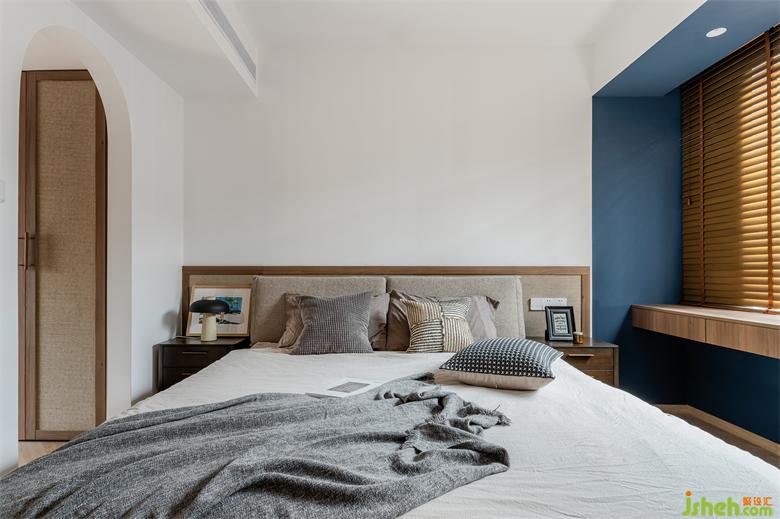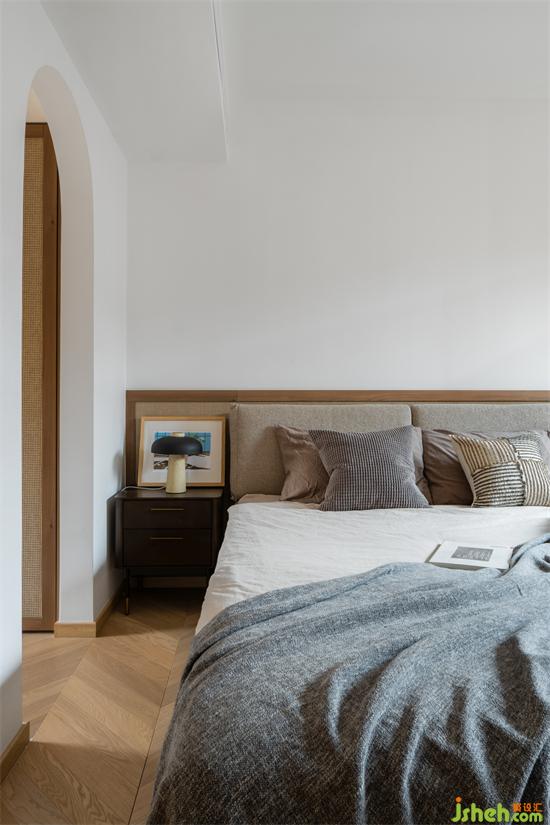 主卧采用藤编饰面作为床头,为主卧注入了自然的气息。“U然木作”的藤编饰面,采用特殊工艺处理,家装设计在保持藤编天然肌理的同时,解决了藤编材质难以打理的难题。