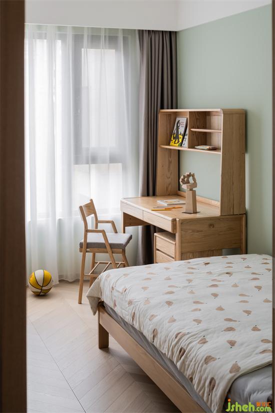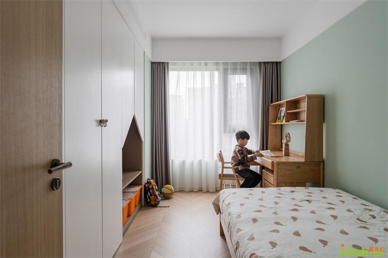 就读学前班的孩子,正是调皮好动的时候。儿童房除了必要的功能需求以外,家装设计尽量减少了不必要的装饰,为孩子提供更多的玩耍空间。