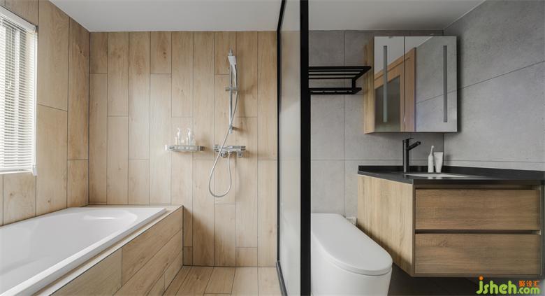 木纹砖包裹出自然的气息,家装设计让主卫延续整体房屋的自然基调,同时为喜欢日式风格的屋主,打造了符合日式风格的洗浴空间。装修设计