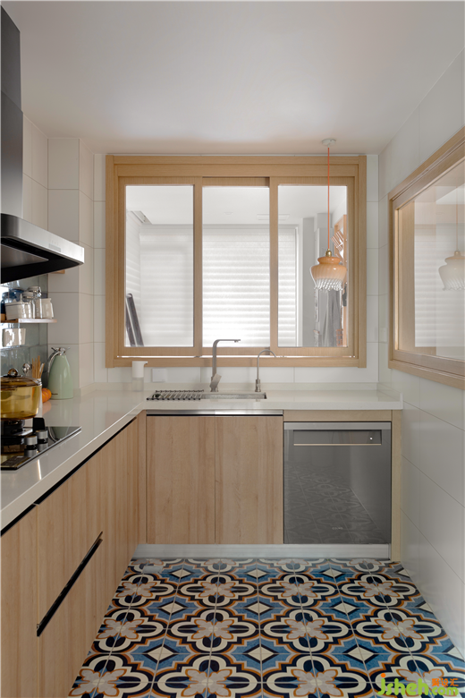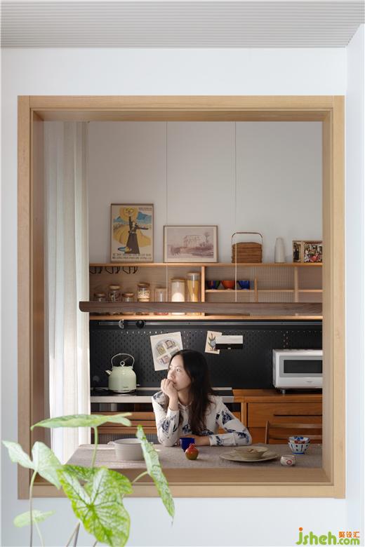 屋主希望家里通透、各空间有互动,所以屋主使用了较多木质窗元素,使各空间相互连接;此外,选择较多成品家具,更具灵活性。