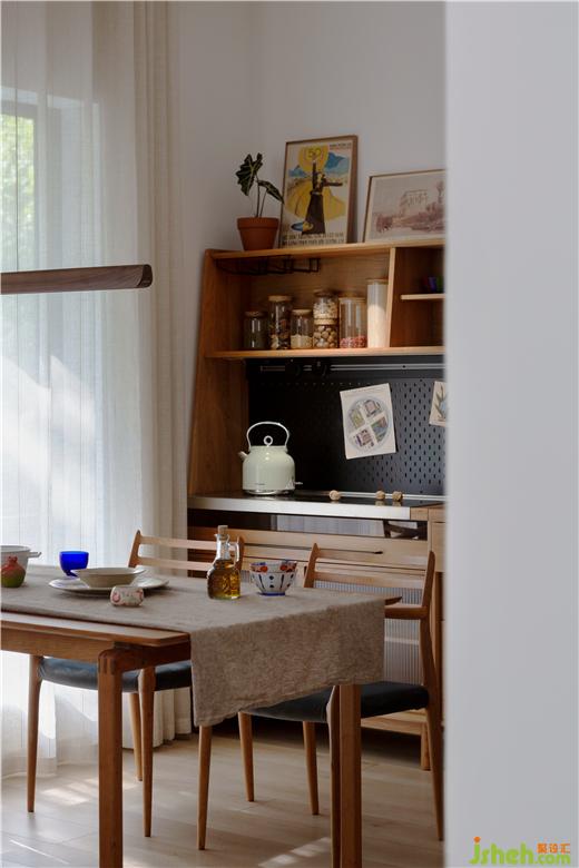 屋主喜欢轻巧可移动的家具,成都蜀郡家装设计于是便选择了了可拼装的极有家置物架,无厚重的提快感,简洁且用途多样。
