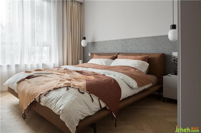 成都中环岛装修采用橡木地板以人字拼贴法落地,墙面上选择反差小、饱和度低的乳胶漆,打造温馨轻奢的主基调。
