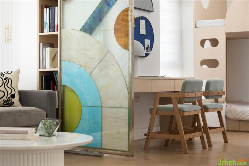 法式装修设计透过客厅可以看着小朋友写作业,这样就多了更多互动 。