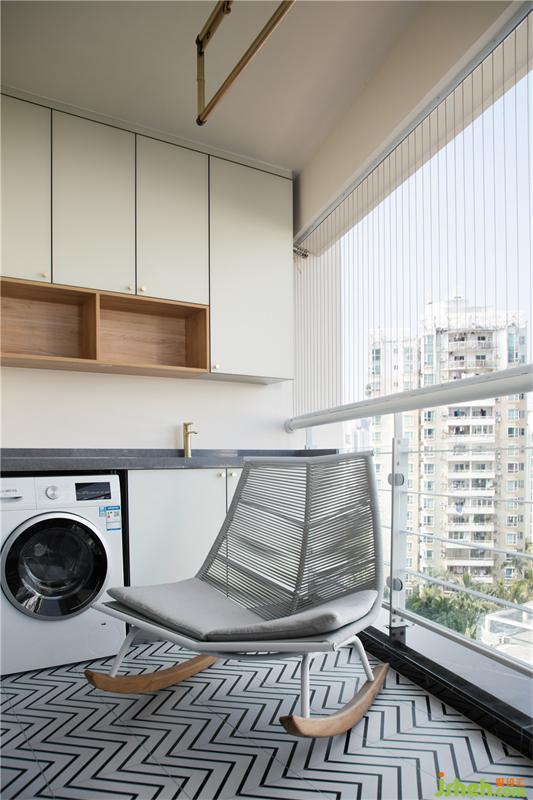 阳台设计了洗衣区,动感的线条地砖,舒适的摇椅,被阳光轻吻过带着花香的衣服,一点一滴汇聚成了温暖的家。