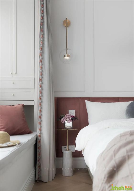 特意用了一个和法国典型的向上拉的纱帘,清晨的阳光透过纱帘透进来,法式家居设计软软的洒在雪白的床单上,我想你有100个理由再在床上赖床10分钟,享受这片刻的温暖。