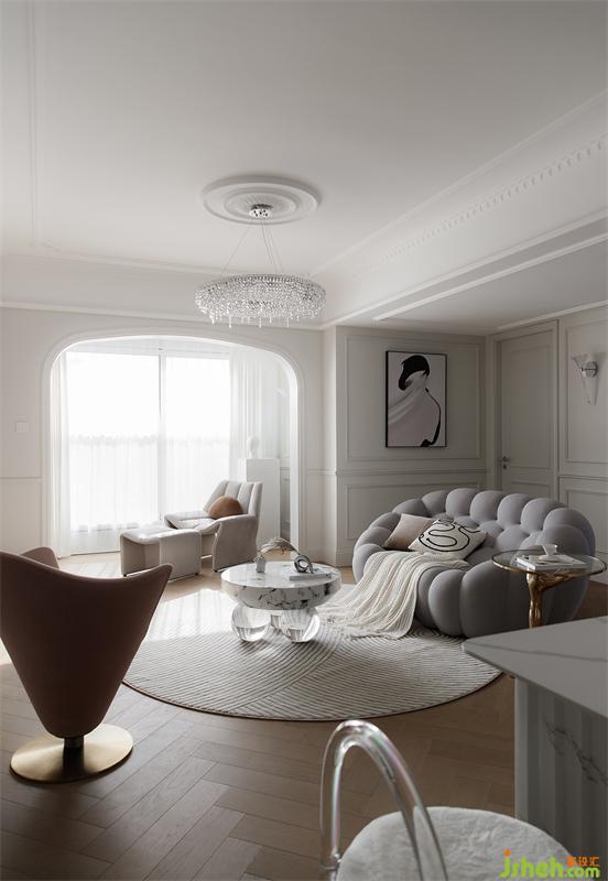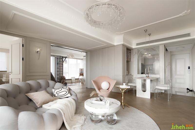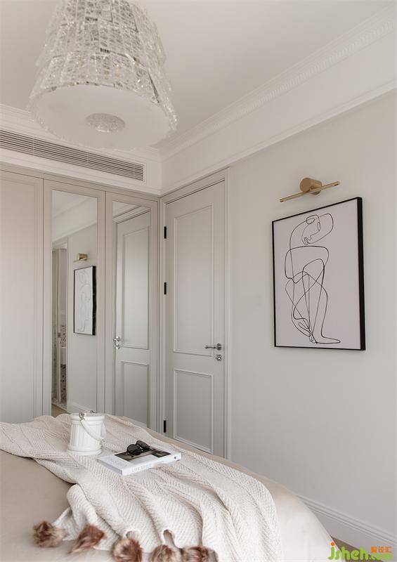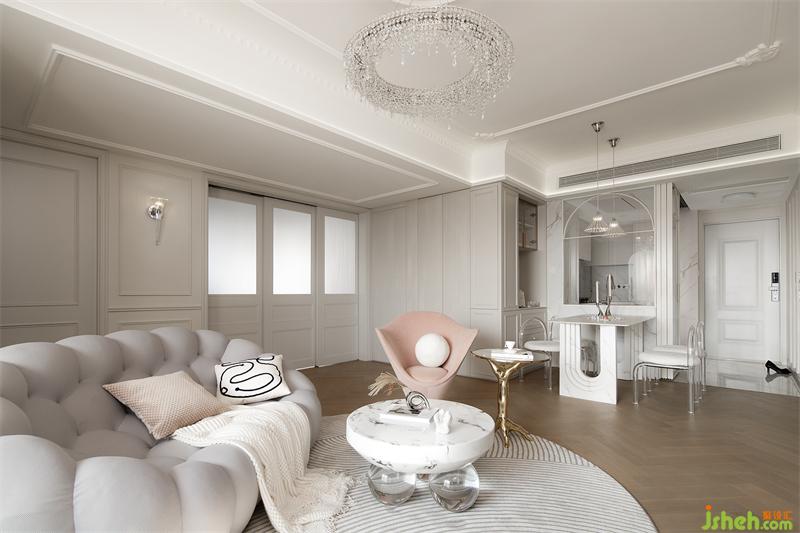 局部点缀的粉色酒杯单椅让女性的优雅气息融入居住空间内,柜门的把手也采用了同样的粉色来与单椅呼应,法式艺术设计让裸色的氛围瞬间变得甜蜜而梦幻,细小的东西往往容易被人忽略,却也最容易温暖居住者的内心。