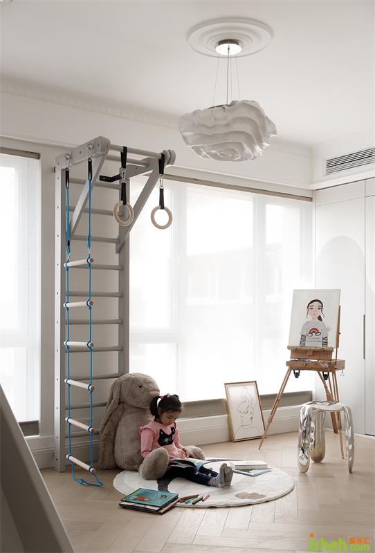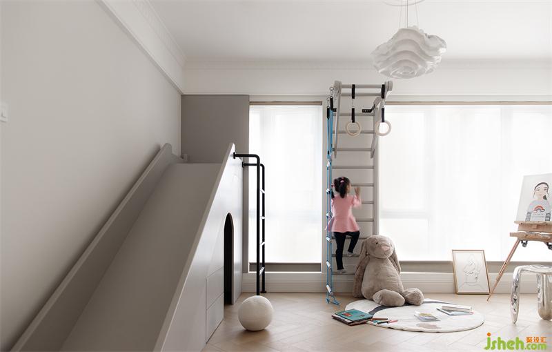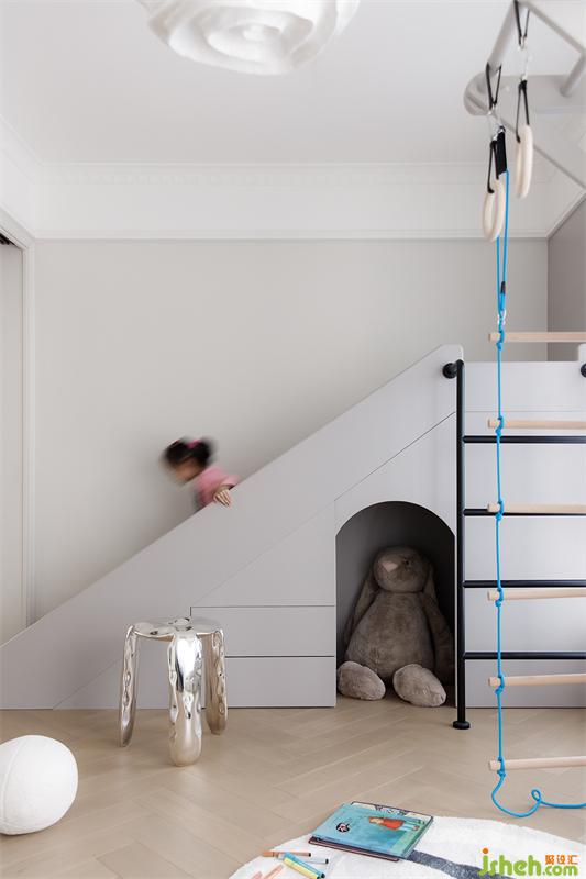 将原本两个小的房间打通后改造成一个大的房间作为儿童游乐区域,滑梯 吊环 大空间 无限的奔跑是小朋友肆意快乐的童年。