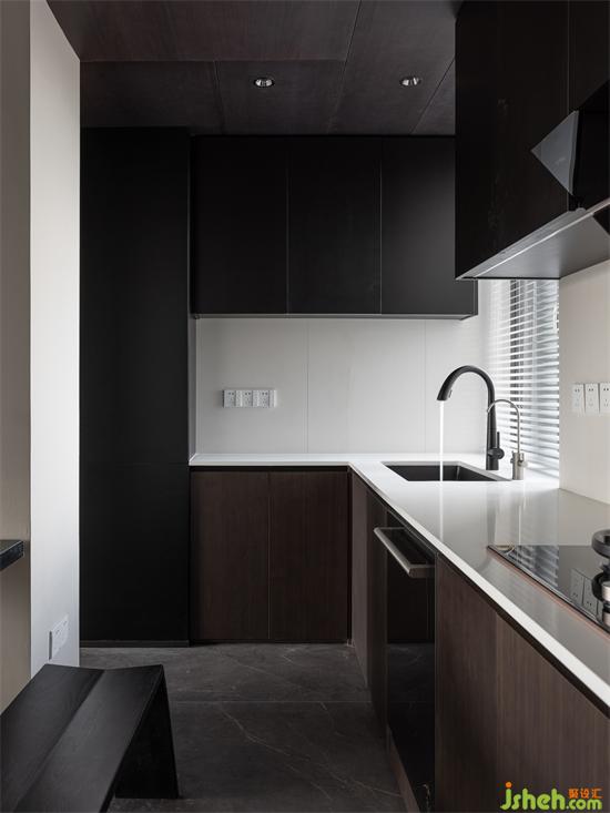 厨房空间虽然不大,但在悠闲的空间里做了最大的储物条件,丰富的橱柜解决餐厨的收纳难题,开放式设计将空间利用率实现最大化。