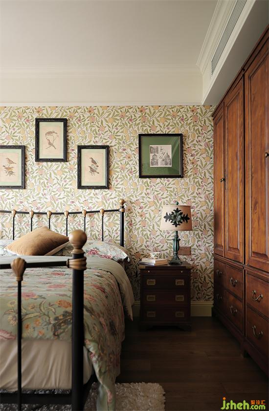 铁艺床架采用黑金配色,复古中带着一丝时尚,床头台灯也是精心搭配所选,布艺灯罩搭配刺绣花卉,深圳金地翠堤湾家装设计与卧室风格相得益彰,整体呈现的精致效果像电影布景,每一帧都是细节。