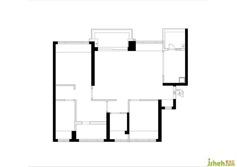 原始户型简单方正,但区域分布无法动静分区处理,部分空间不合理造成利用率不高;
