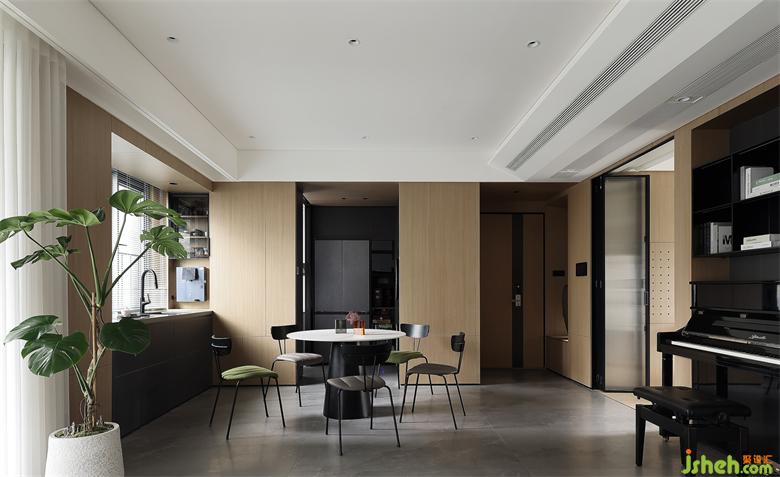 开放式空间布局,LDK一体化设计,餐厅飘窗的合理利用,深圳天健天骄装修设计以及钢琴“抠出”墙面空间妥善放置,加入多功能房的设计,满足日常办公、临时居住等需求,空间得到高效且合理的利用,生活便捷且舒适。