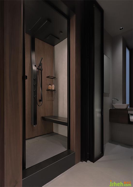 淋浴房采用骊住整体卫浴设计,定制尺寸让空间完美利用,符合人体工学,深圳首地容御豪宅设计提供治愈享受的沐浴时光,黑色花洒细节呼应全屋格调,细节皆是品质。