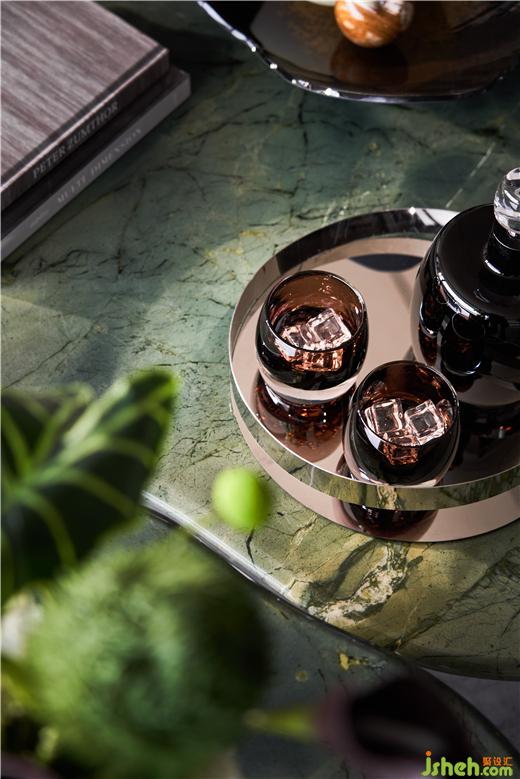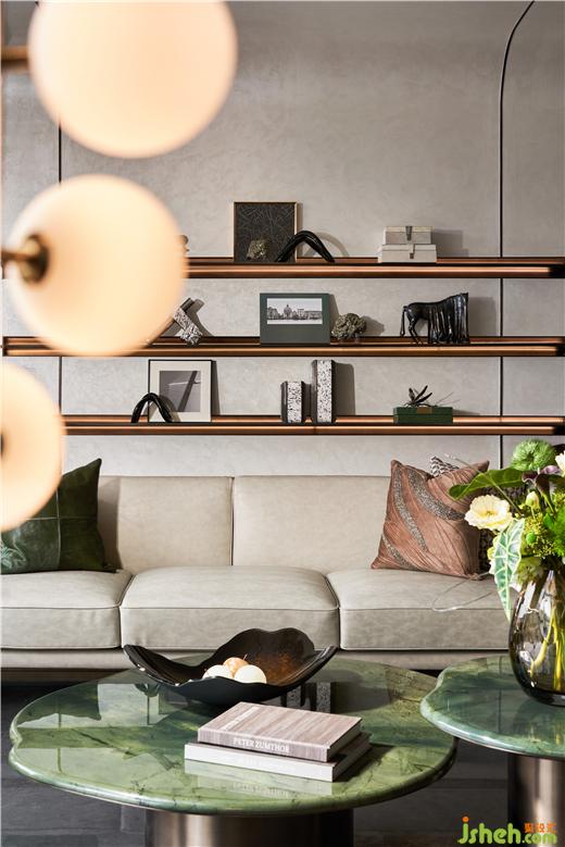 瓦松绿不过分艳丽,也不过于隐匿,是一种高级、优雅、温柔的绿色,是冷清中拥有生机感的绿色。以瓦松绿点缀空间,让整个空间既有蓄势的氛围,又有向上的张力。