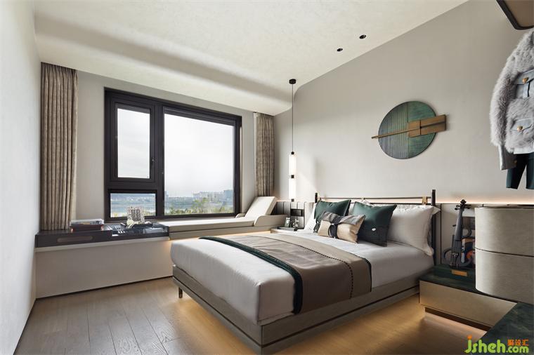 卧室的墙面选取低饱和色涂料,低调内敛,舒适可亲,卫生间冷灰瓷砖、延续的瓦松绿台面,以简御繁,以寡胜多,让生活舒适、轻盈。为匆忙的生活留下一片精致净地,便能收获不一样的内心境界和生命高广。