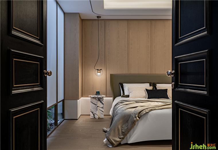 楼梯采用黑白色系的线条上下延伸,仿佛水墨流转,北京半山别墅设计诠释出场域的关联与层次变化。