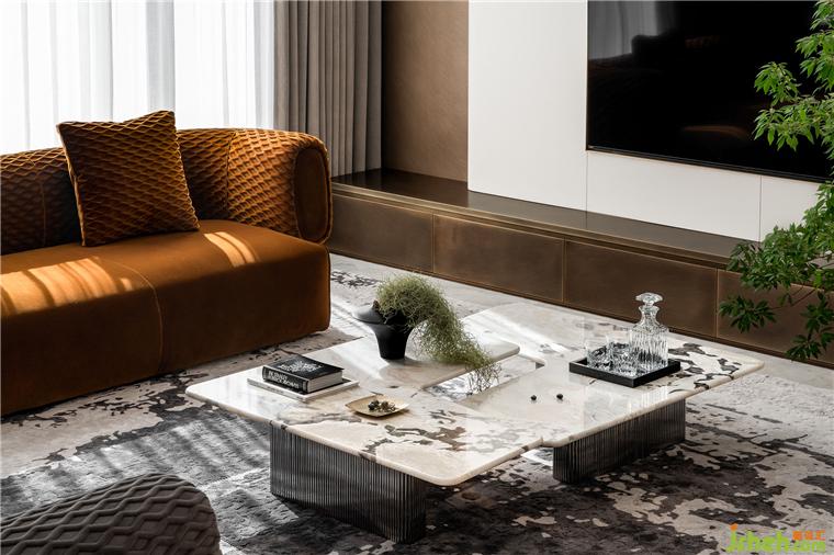 客厅摒弃繁冗,北京半山别墅设计以素雅的基底,凸显材质与工艺本身。地毯的表现形式与大理石的肌理,呼应整体之余又演绎出多样层次,赋予居者丰富的感官体验。