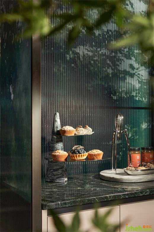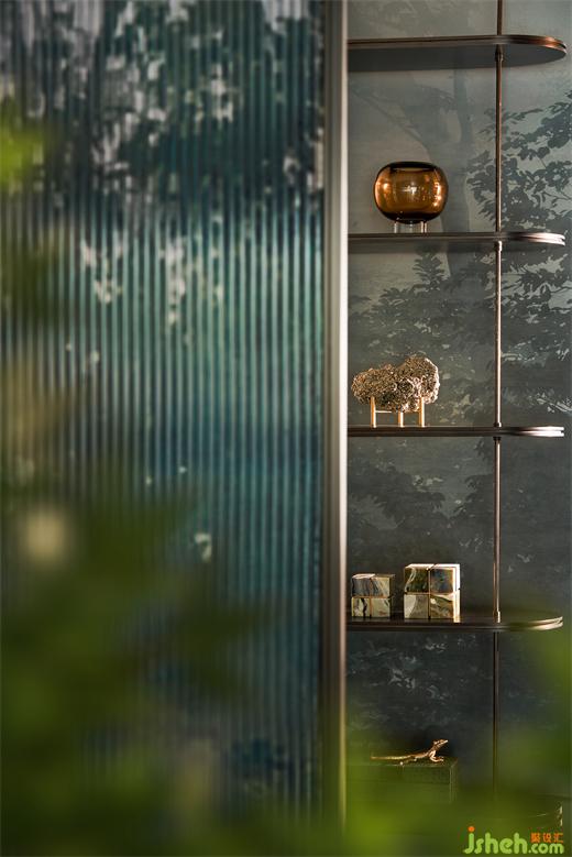 开门见绿,沁人心脾,一层玄关处的手绘墙纸伴着向上延伸的夹丝玻璃,将“苍绿”温柔呈现,仿佛误入丛林,让人情不自禁深入探索内在的美好。