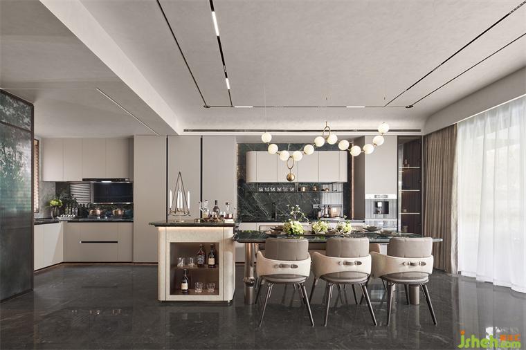 深入向前,客厅似一幅画卷徐徐展开,阔绰尺度,奢适无界,开放舒展,视线宽敞。特色扪皮、夹丝玻璃与真丝面料强调卓越品质,不锈钢与石材在碰撞中催生别样美感。样板间设计自然优雅的气息弥漫整个空间,包容、随性的生活理念也在尽情蔓延。