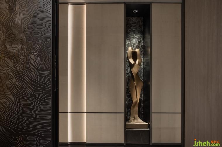 玄关作为家宅之始,便以温暖材质与柔和灯光相迎。通顶柜体的设计,暗藏存储空间,让出行与归来皆倍享自在。样板房设计辅以嵌入的雕塑艺术,既是端景,又可机动变换为节日活动主题元素,在方寸之地赋予入户无限可能。