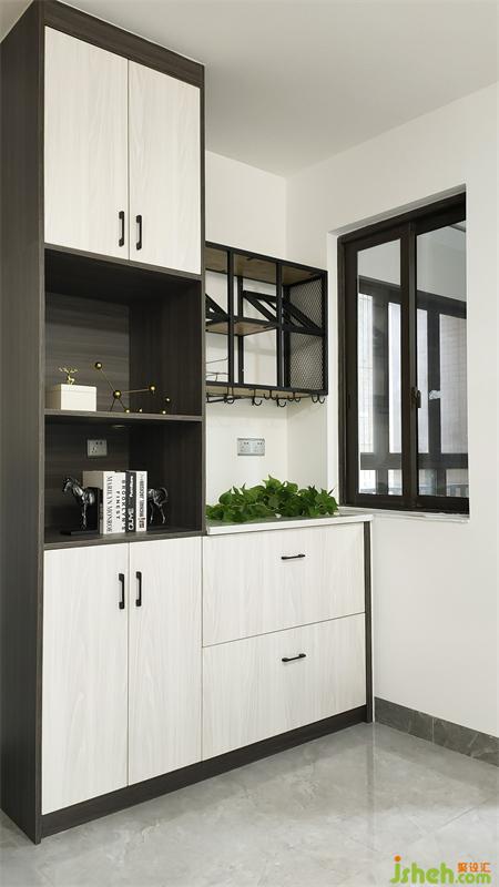 在玄关的装修设计上,与其说设计师用了大量的白色和灰色,不如说舍弃了一些无聊的色彩堆砌,裸露出材质本身的肌理
