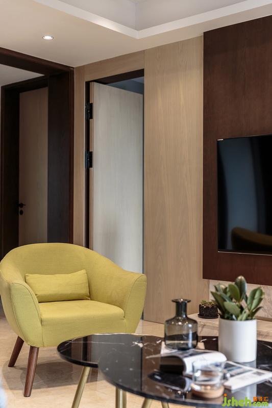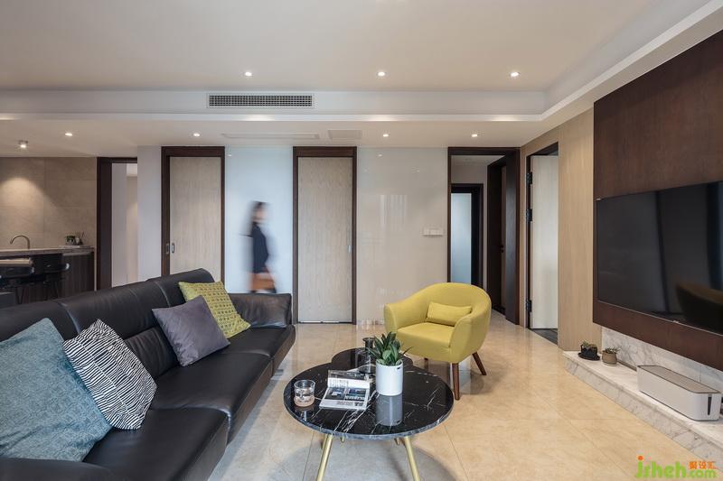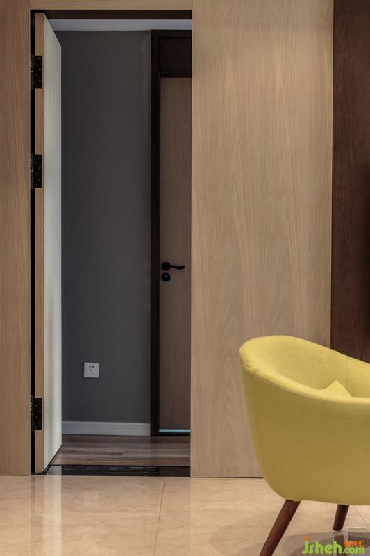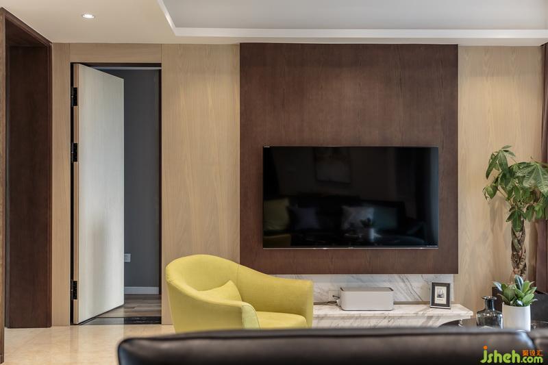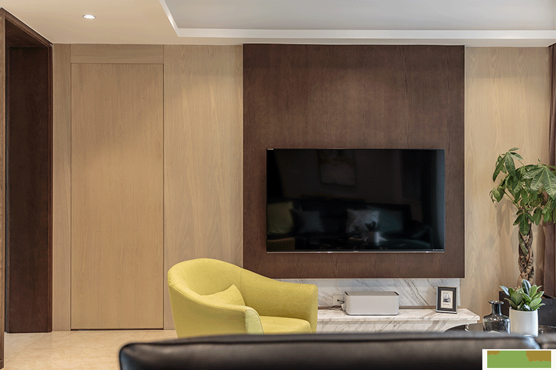 主卧的门在客厅电视墙位置,使原本就不大的电视墙更是分割得支零破碎,所以我们做了隐形门处理,让客厅更显得大气。