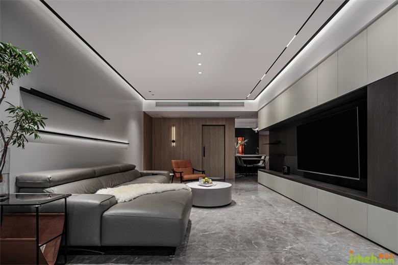 客厅是家中最核心的处所,方正平和,色彩低调,每一种元素都饱含丰富的内涵:大大的落地窗演绎着昼夜交替,是黑与白的对话,家装设计窗外的风雨阴晴和四季变换,是生活的真谛和渐浓的岁月。