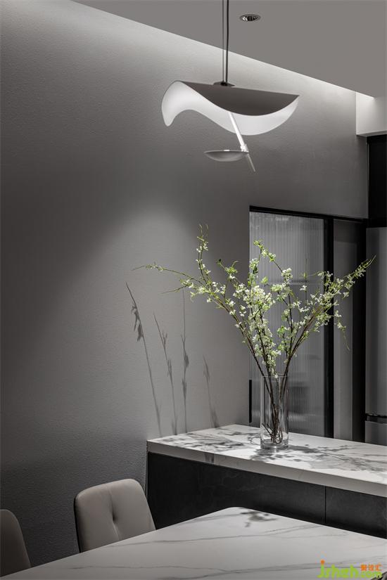 明暗处理得恰到好处,褪去浮夸的色彩与喧闹,斑驳的绿植的影子打在墙上,家装设计于空间氛围感的烘托更是点睛之笔。