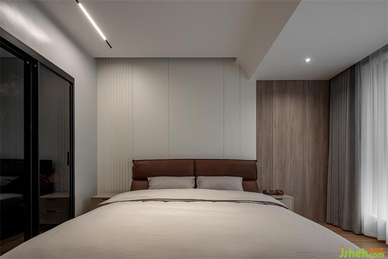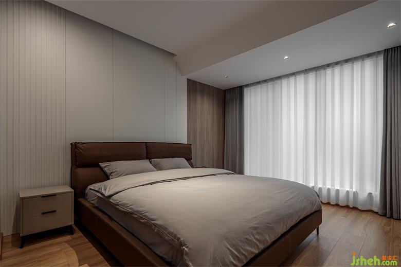 以白色为主打色,白墙、白色窗纱铺陈出简洁明净的空间,木色护墙板材质温暖,木地板质感细腻,家装设计配以灰色的遮光窗帘和床上棉柔质品,安静、温馨、柔和的氛围感呼之欲出,是最适合睡觉的眠居地。